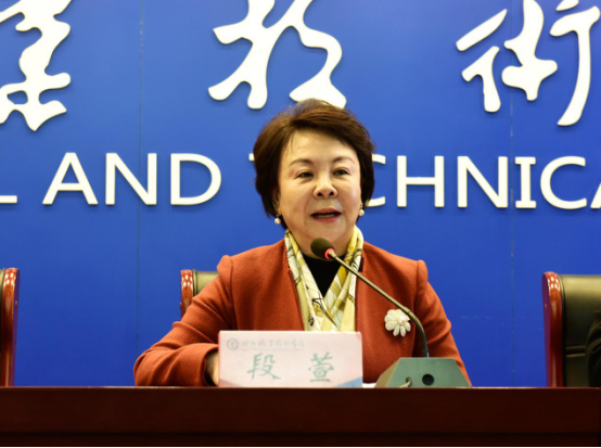 接着,段萱董事长致辞,她首先感谢德州职业技术学院的诚挚邀请,随后介绍了校企合作以来的专业建设情况以及专业发展前景,对已经走向工作岗位的毕业生给予高度评价,随后表达了继续深度合作,培养更多优秀的、医养照护专门人才的美好愿望。