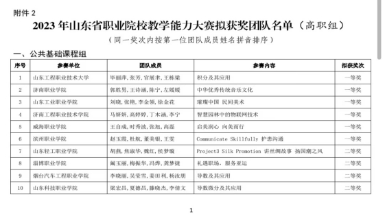 近日,由山东省教育厅主办的2023年山东省职业院校教学能力大赛拟获奖团队名单公布,吴双、王倩、王霄琳、吕志伟老师的参赛作品《坠床的预防与照护》获山东省职业院校教学能力大赛(高职组)专业课程二组三等奖,本次大赛是对学院教师教学能力的实战检验,同时彰显了我校年轻教师的精神风貌。