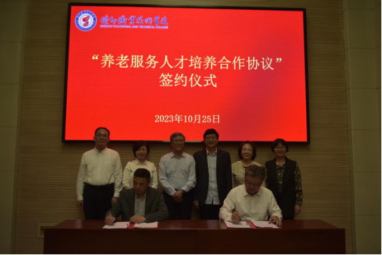 座谈会上,政校企三方围绕拓宽合作领域、明确人才培养方向、组建课程团队等方面进行了深入探讨,签署了《养老服务人才培养合作协议》,并共同为“养老服务人才培养合作基地”揭牌。