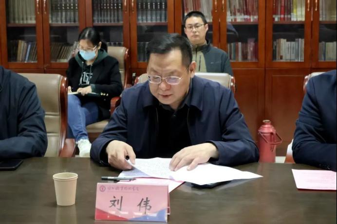 党委副书记、院长孟繁营主持座谈,对考察组一行表示热烈欢迎。党委委员、工会主席刘伟介绍了学校办学历程、办学特色、人才培养成果、产教融合工作等情况,希望进一步加强交流,深化产教融合、科教融汇,实现共同发展。