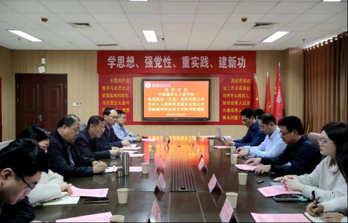 美亚联创(北京)科技有限公司大区经理于晓腾、苏州久久春晖养老服务有限公司董事长梁好青分别介绍了企业发展情况,并表示希望与我校在人才培养、社会培训、产教融合等方面深入开展合作,实现优势互补,互惠共赢。