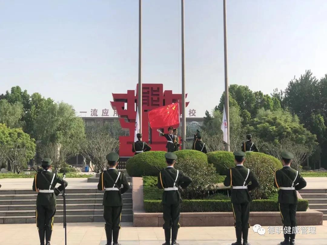 在全体师生的注目礼下,英姿飒爽的国旗护卫队队员们护送鲜艳的五星红旗进场,伴随着庄严的国歌声,升旗手缓缓升起国旗。微风阵阵,鲜红的国旗随风招展,耀眼夺目。