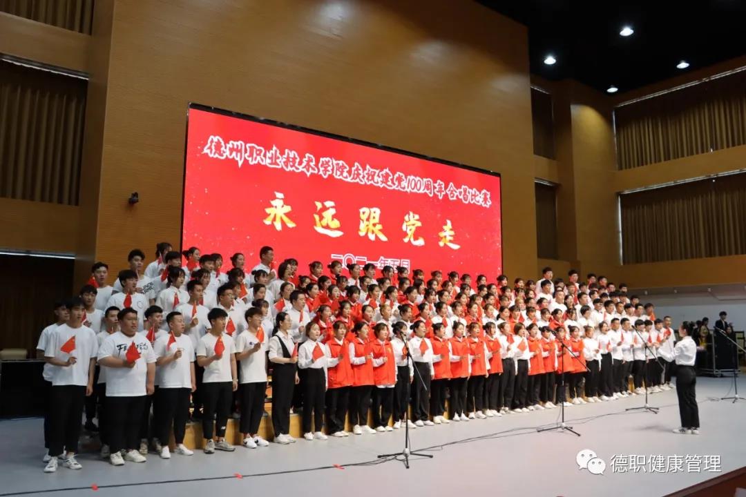 为庆祝建党100周年,弘扬爱国精神,讴歌党的百年丰功伟绩,充分展示学生的爱国主义热情、昂扬的精神面貌,加强大学生思想道德建设,增强师生的凝聚力和向心力,营造良好的校园文化氛围,5月26日,德州职业技术学院组织各院系在德州市公共实训中心一楼多功能厅开展了“永远跟党走”庆祝中国共产党成立100周年歌唱比赛活动。