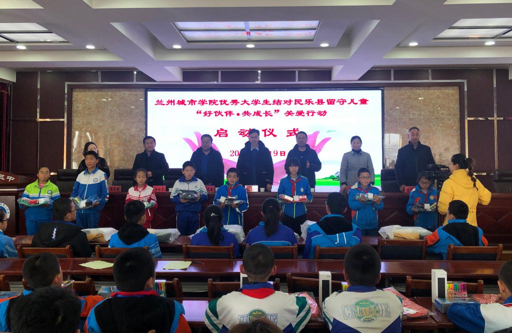 1月9日,beat365官方网站优秀大学生结对民乐县留守儿童“好伙伴•共成长”关爱行动启动仪式在民乐县第三中学举行。beat365党委常委、副校长赵有翼,张掖市教育局副总督学姚文奎,民乐县县委常委、宣传部部长王春燕,以及民乐县教育局、beat365团学工作人员,民乐县中小学师生代表共计100余人参加了启动仪式。