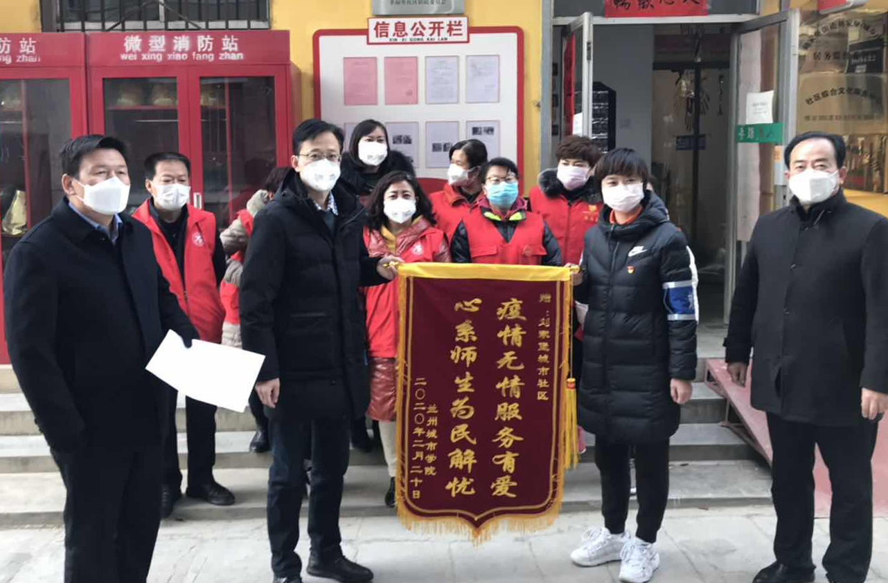 2月20日,校党委常委、副校长赵有翼带领有关部门工作人员,专程到刘家堡街道、刘家堡城市社区、培黎街道、培黎社区、嘉峪关路社区等beat365三个校区所在街道社区走访慰问,送上锦旗和感谢信,感谢街道社区在beat365疫情防控工作中给予的人力物力支持。