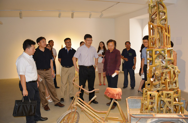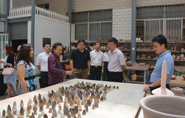 汇报会前,检查组一行参观了解了引智专家几年来的成果,并参观了“后彩陶时代”国家外国专家局高端引智项目第二届陶艺创意研发作品交流展。