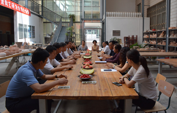 聂彪在听取汇报后对美术学院工作室在发挥引智专家的作用给予了肯定。他强调,中国的产品、文化对国外专家有很强的影响力,文化的软实力是需要通过国际化的元素表达的。他表示,愿意加大力度进一步支持这个项目,把这里建成彩陶艺术研发领域的高端平台。