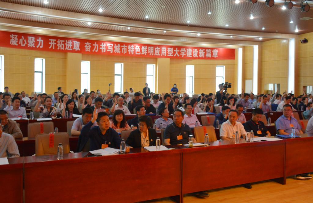 许尔忠号召全体教职员工,用更加饱满的热情、更加昂扬的斗志和更加扎实地作风,迎难而上、锐意进取,主动担当、积极作为,努力完成大会部署的各项目标任务,不断在建设城市特色鲜明高水平应用型大学的奋斗进程中争光添彩,建功立业。