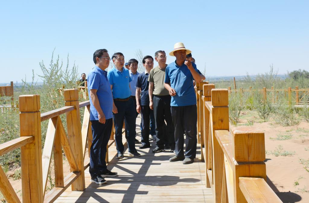 26日下午,学习组成员来到古浪县,参观了八步沙六老汉治沙纪念馆和八步沙林场,聆听了第二代治沙人郭万刚、贺中强的讲解,详细了解了以六老汉三代人为代表的八步沙人,积极投身治沙造林,用爱和信仰坚守家园梦想,用青春汗水铸就金山银山的先进事迹,被他们坚定的理想信念,以及困难面前不低头、敢把沙漠变绿洲的奋斗精神,治沙造林、改天换地的实干精神和锲而不舍、自强不息的进取精神所深深感动。