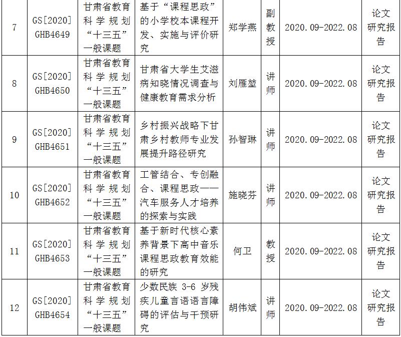 beat36512项课题获2020年度甘肃省教育科学规划“十三五”一般课题立项