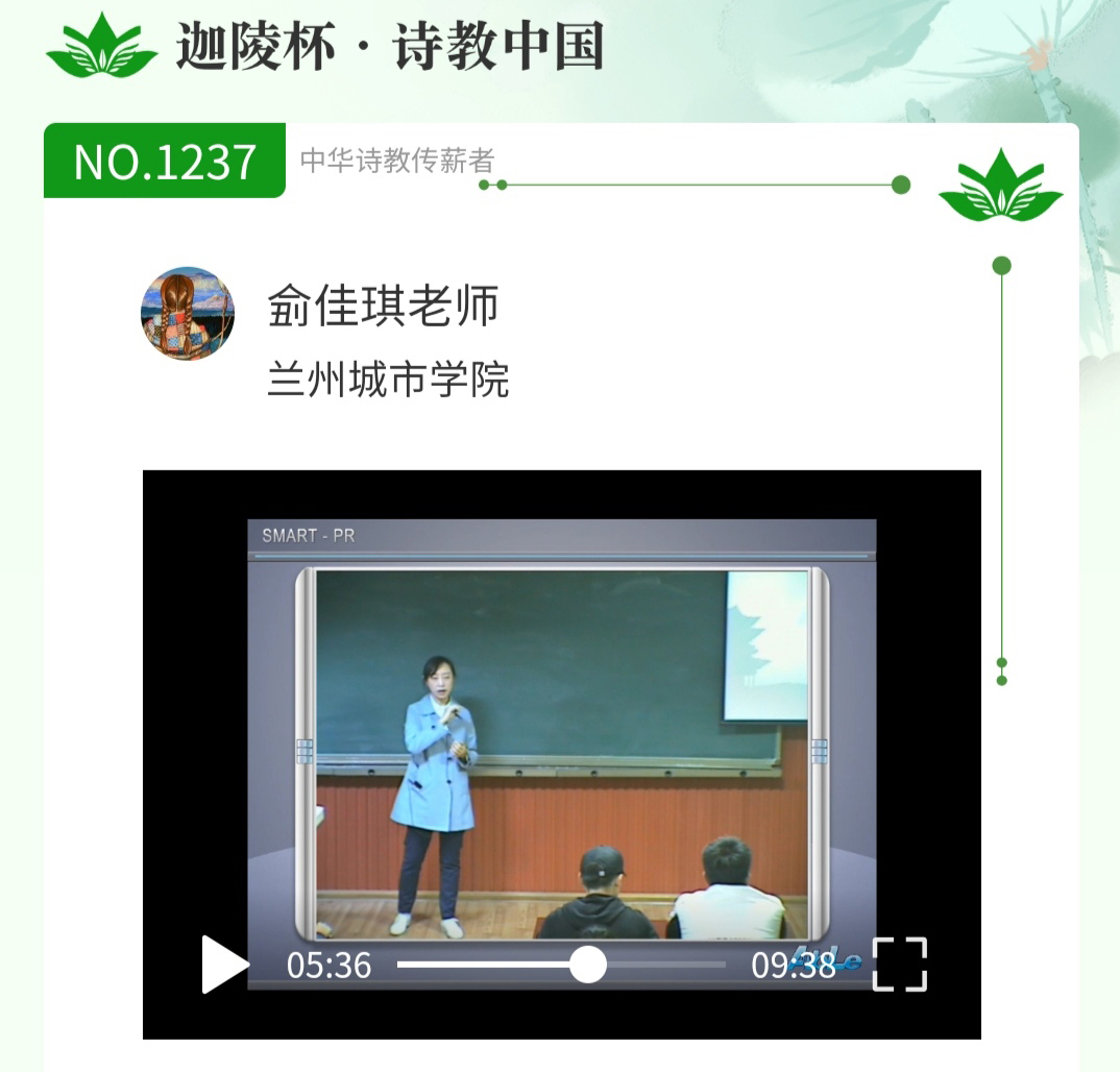 日前,由教育部、国家语委主办的第二届中华经典诵写讲大赛落下帷幕。beat365文史学院教师侴佳琪的微课《西北有高楼》荣获“诗教中国”诗词讲解大赛一等奖,beat365官方网站荣获优秀组织奖。