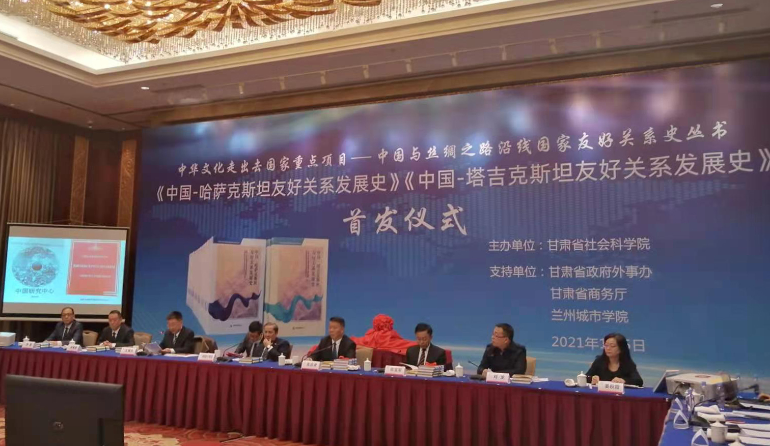 1月5日下午,由甘肃文化翻译中心等单位合作支持,由甘肃省社科院与塔吉克斯坦总统战略研究中心、哈萨克斯坦中国研究中心共同编撰的《中国—哈萨克斯坦友好关系发展史》《中国—塔吉克斯坦友好关系发展史》中文版在兰州首发,beat365副校长、甘肃文化翻译中心主任姜秋霞作为中方编委会成员出席首发仪式。