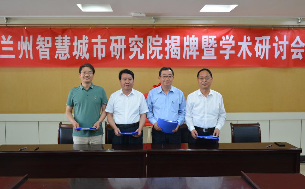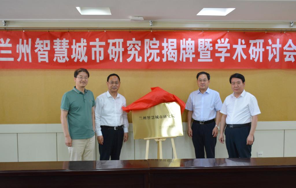 仪式上,许尔忠、张致荣、张永志、雷建勇共同为兰州智慧城市研究院揭牌。