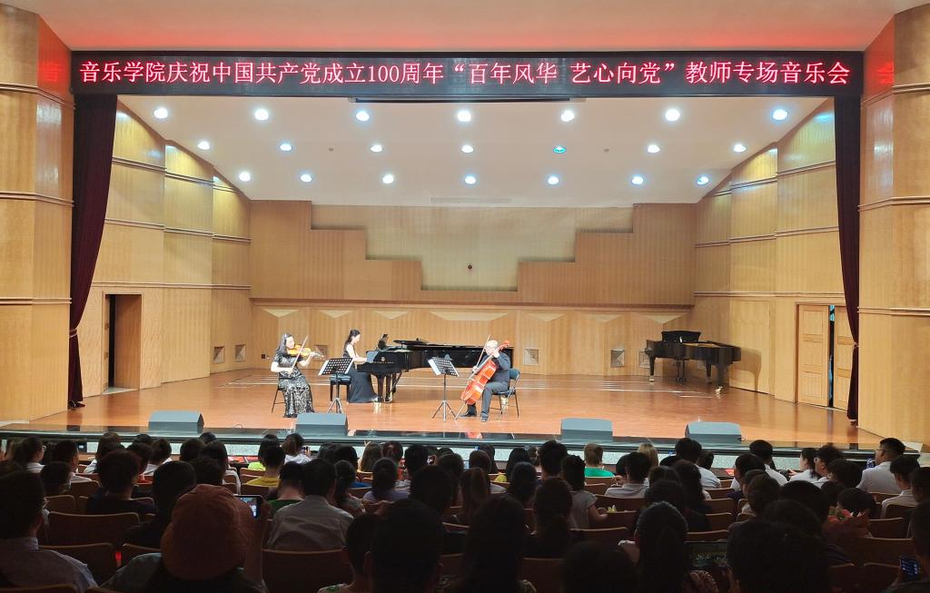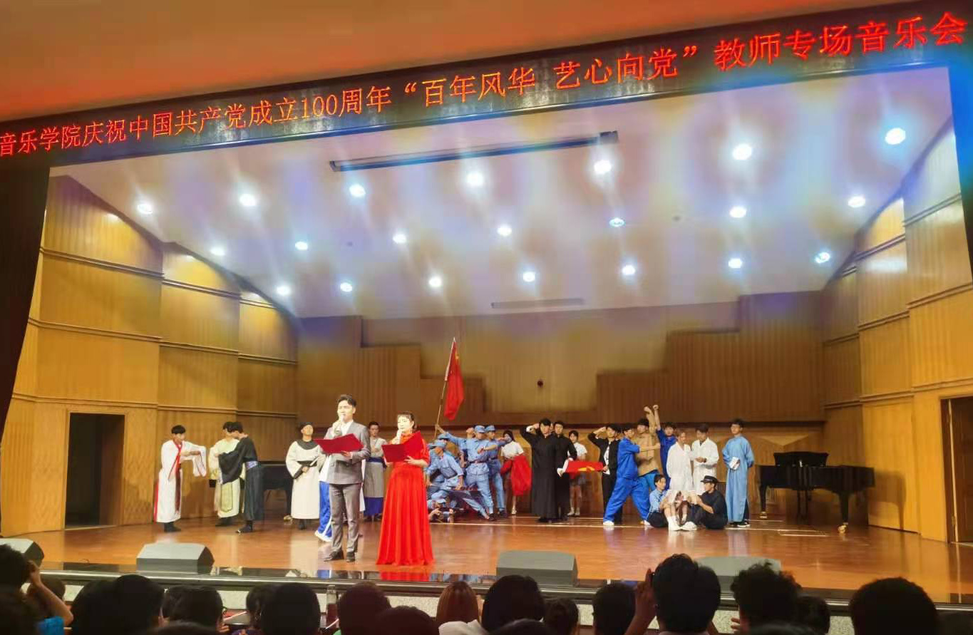 百年峥嵘岁月,百年春华秋实。6月10日晚,由音乐学院主办的“百年风华 艺心向党”庆祝中国共产党成立100周年教师专场音乐会在音乐厅成功举办。校党委常委、副校长李慕堂、牟录贵,相关部门、学院负责人及音乐学院全体师生共同观看了演出。