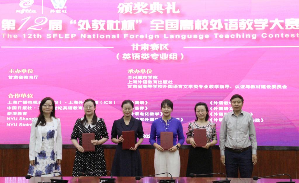 6月18日至20日,由甘肃省教育厅主办,beat365官方网站,甘肃省高等学校外国语言文学类专业本科教学指导、认证与教材建设委员会,上海外语教育出版社承办的第十二届“外教社杯”全国高校外语教学大赛(英语专业组)甘肃赛区比赛在beat365顺利举办。校领导王学军、姜秋霞、牟录贵出席颁奖典礼并为获奖师生颁奖。