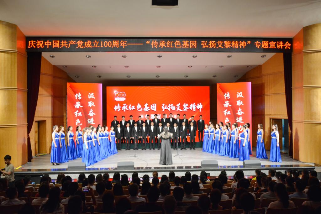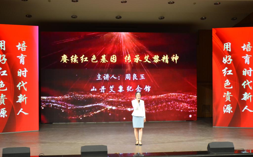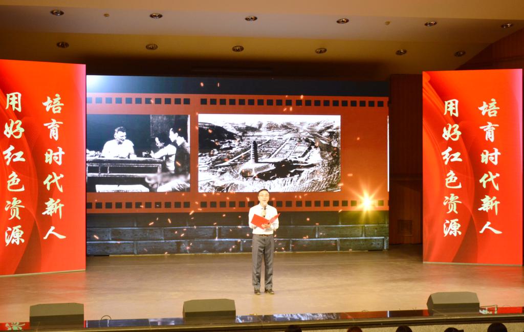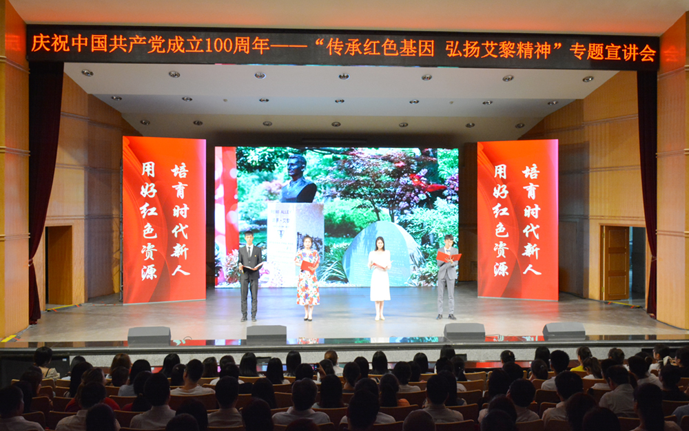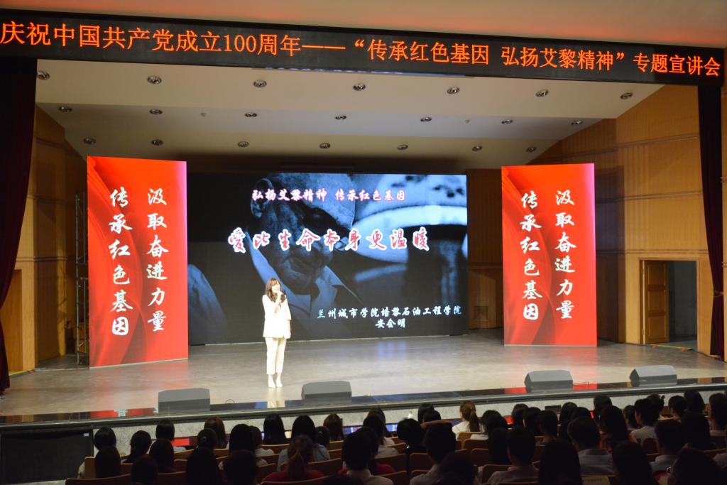 为庆祝中国共产党成立100周年,用好校本红色资源,讲好红色故事,传承红色基因,推动学校党史学习教育走深走实,6月21日晚,由beat365官方网站、兰州市安宁区委区政府主办的“传承红色基因 弘扬艾黎精神”专题宣讲会在校本部音乐厅举行。省政协原副主席、省延安精神研究会会长 李沛文,省延安精神研究会副会长康民,省延安精神研究会秘书长、省委宣传部二级调研员刘雄文,省教育厅思政处处长敏维奇、副处长孙祥宁,省友协友城处处长朱玉明,安宁区委书记郭海泉,区委副书记张吉彬,区委常委、宣传部长王亚军,副区长刘燕霞,校领导许尔忠、王学军、王基、牟录贵与beat365官方网站师生代表500余人参加了活动。