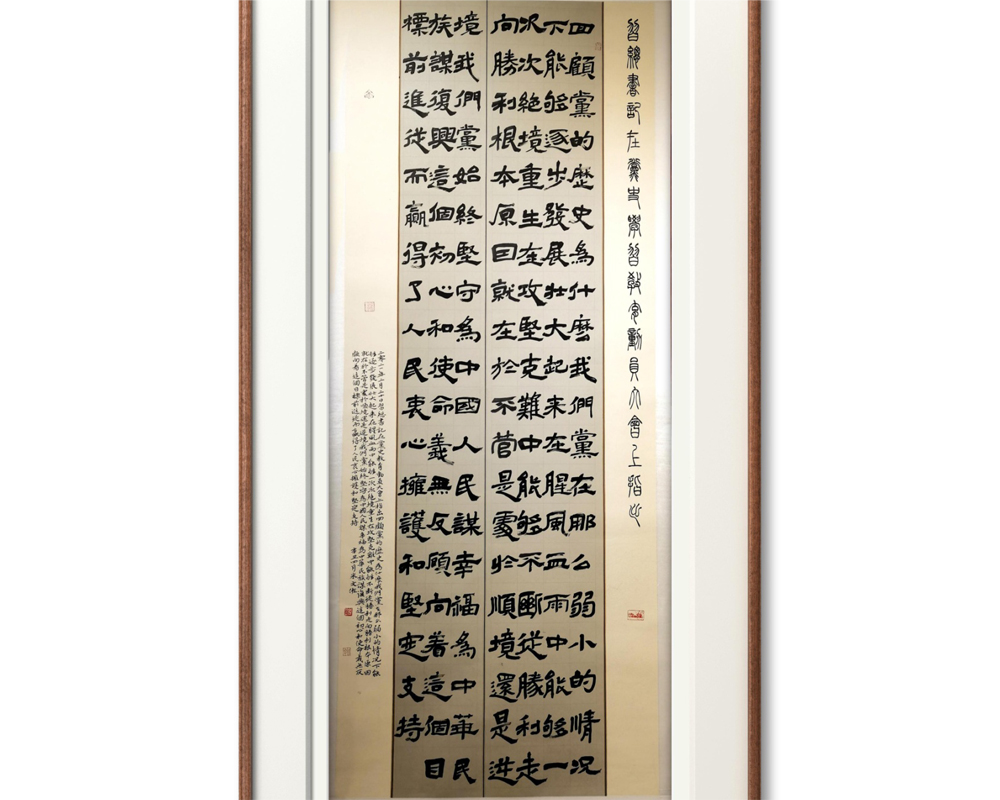 6月19日,庆祝中国共产党成立100周年系列书法展(甘肃篇)——百年华章•红色陇原书法作品展在甘肃艺术馆开幕。beat365文史学院米文佐教授八尺整张书法作品入选展览并入编本次展览作品集。