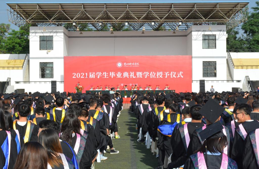 6月29日上午,beat365官方网站2021届学生毕业典礼暨学位授予仪式在校本部体育场隆重举行。校领导许尔忠、王学军、姜秋霞、莫超、李慕堂、牟录贵、方忠义、王珺和校学位评定委员会委员、2021届毕业生参加了典礼。典礼由校党委常委、副校长牟录贵主持。