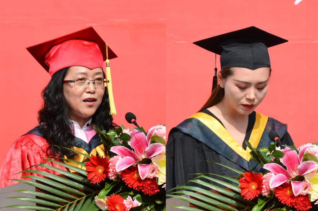 相伴四年,师恩难忘。幼儿师范学院王晓丽教授代表全体教师发言,表达了对毕业生的热切祝贺和殷殷期盼。培黎石油工程学院储运171班王倩倩代表2021届毕业生发言,表达了对母校、老师、父母的感恩之情,畅叙对未来美好人生的憧憬。