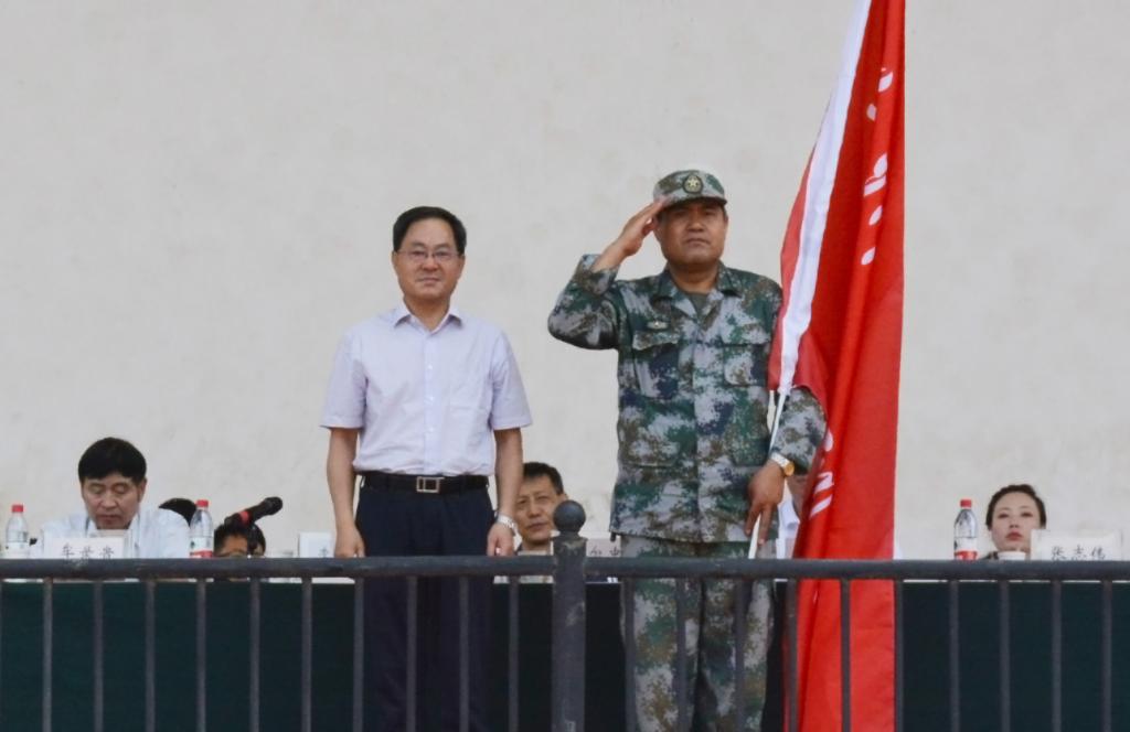 军训承训单位、甘肃省国防科技学校校长张志伟对参加军训的教官和学员提出了训练要求。传媒学院播音201班学生张杰、培黎机械工程学院机器人201班苏俊元作为参训学生代表发言。