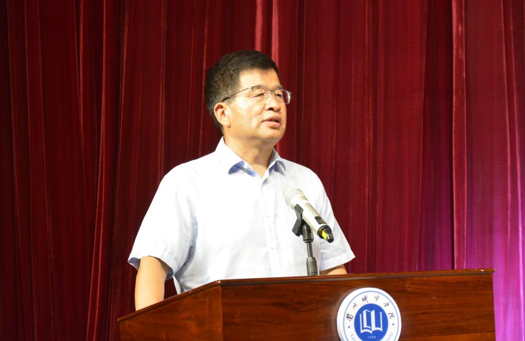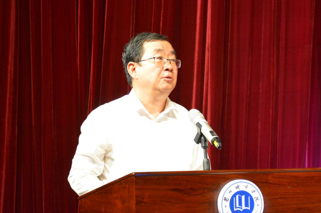 辛刚国致辞指出,此次《陇原第一枪》交流展演活动,既是非遗传承进高校的有益尝试,更是两校携手共同推进党史学习教育走深走实的生动实践。他简要介绍了环县道情皮影艺术的历史渊源与基本特征,强调《陇原第一枪》最大的创新之处是用道情皮影戏的形式演出红色故事,突出庆祝建党100周年主题,传承和弘扬南梁精神;也通过创新道情皮影表演形式,引领传统的皮影戏从陇东窑洞走向城市观众,从农家小院搬到专业剧场,是非物质文化遗产传承创新的一次大胆尝试。他希望以此次展演活动为契机,进一步拓展两校之间的交流和合作,进一步加深两校之间的友谊。