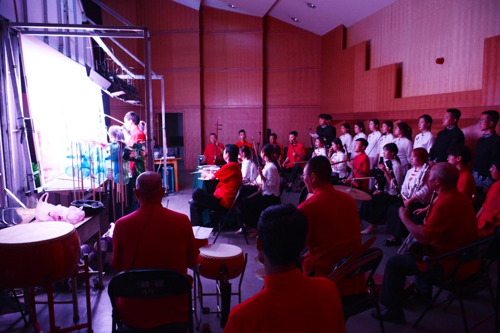 台前,皮影灵动讲述陇原红色故事;幕后,各级非遗道情皮影传承人和陇东学院学生,一同舞皮影、唱道情,传承演绎经典文化。