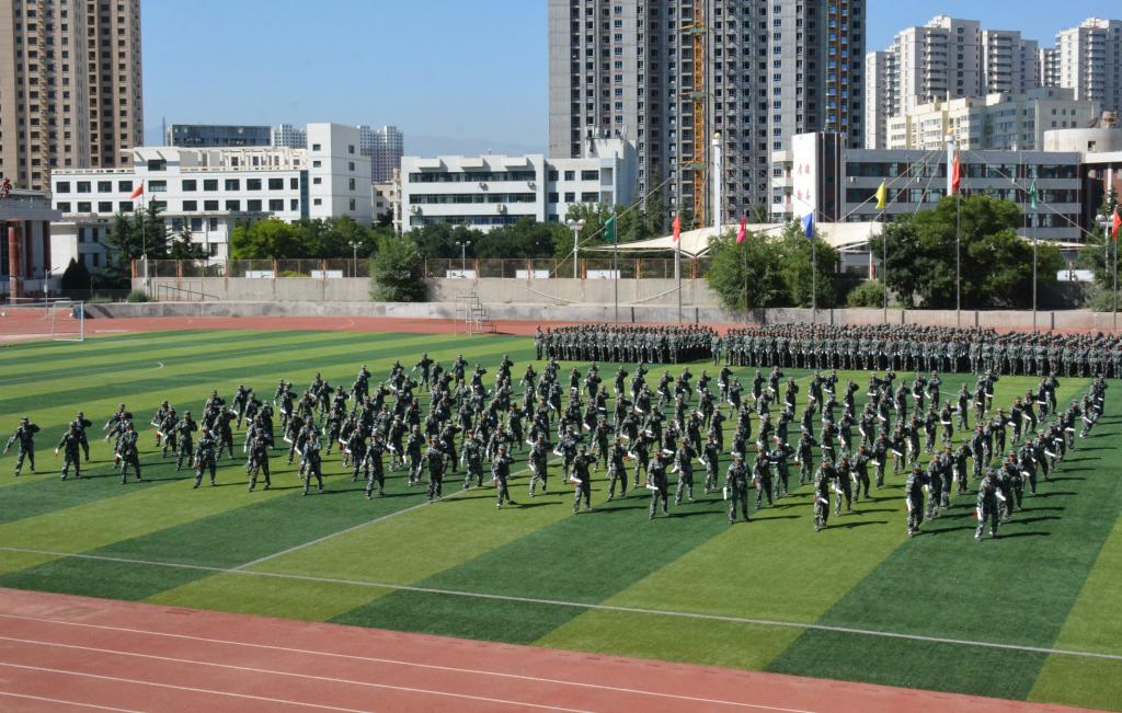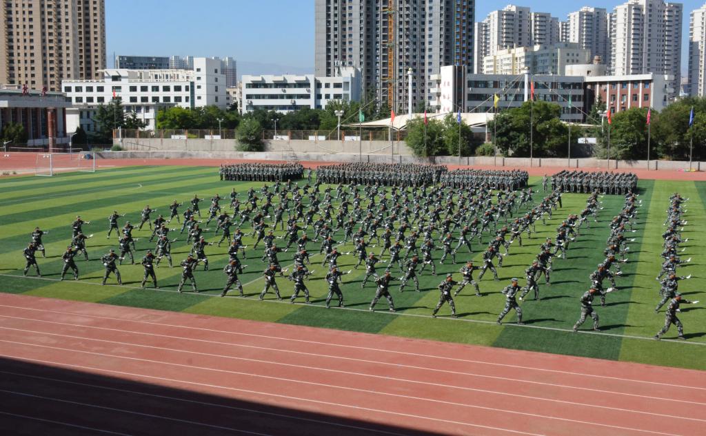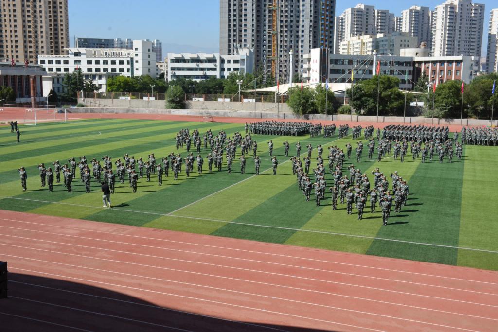 在庆祝中国共产党成立100周年之际,在“两个一百年”奋斗目标历史交汇的关键节点,学校在2020级学生军训中开展情景党史故事课、经典电影播放等教育活动,使党史学习教育与爱国主义教育成为本次军训的突出特色,引导学生树立强烈的民族自尊心和自豪感。汇报表演中,千名同学摆出“祖国”“人民”等字样和“1921”“1949”“2021”等具有特殊意义的数字,激情歌唱《秋收起义歌》《八月桂花香》《十送红军》《没有共产党就没有新中国》等经典红色歌曲,用歌声讲述党的历史,用数字镌刻光辉足迹,表达了青年学生对党、对祖国的浓厚深情和热情讴歌。