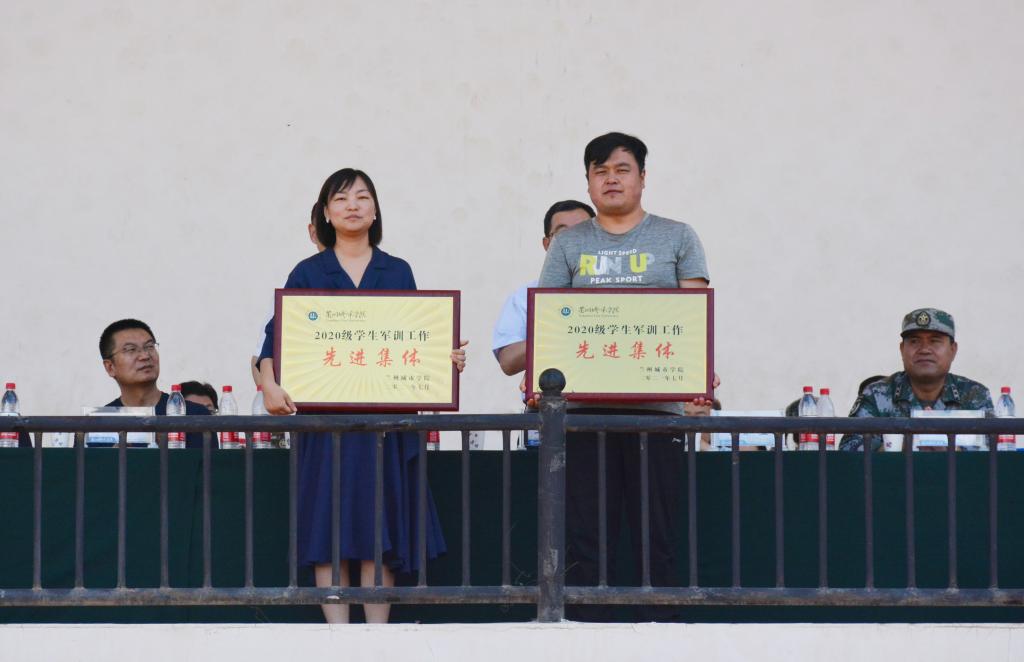 校党委常委、副校长牟录贵宣读了《beat365官方网站关于表彰2020级学生军训工作先进集体和优秀个人的决定》,与会领导向受表彰的集体和个人颁发了奖牌和证书。文史学院、培黎机械工程学院等6个学院荣获2020级学生军训工作“先进集体”,黄旭东等11名教师被评为“优秀带队教师”,李建国等8名教官被评为“优秀教官”,马亚楠等113名同学被评为“优秀学员”,54间宿舍被评为“优秀内务宿舍”。