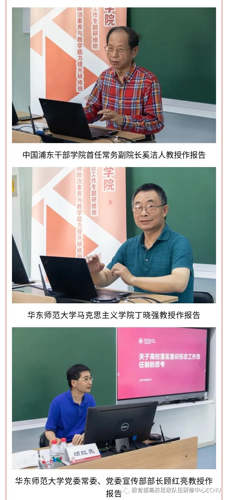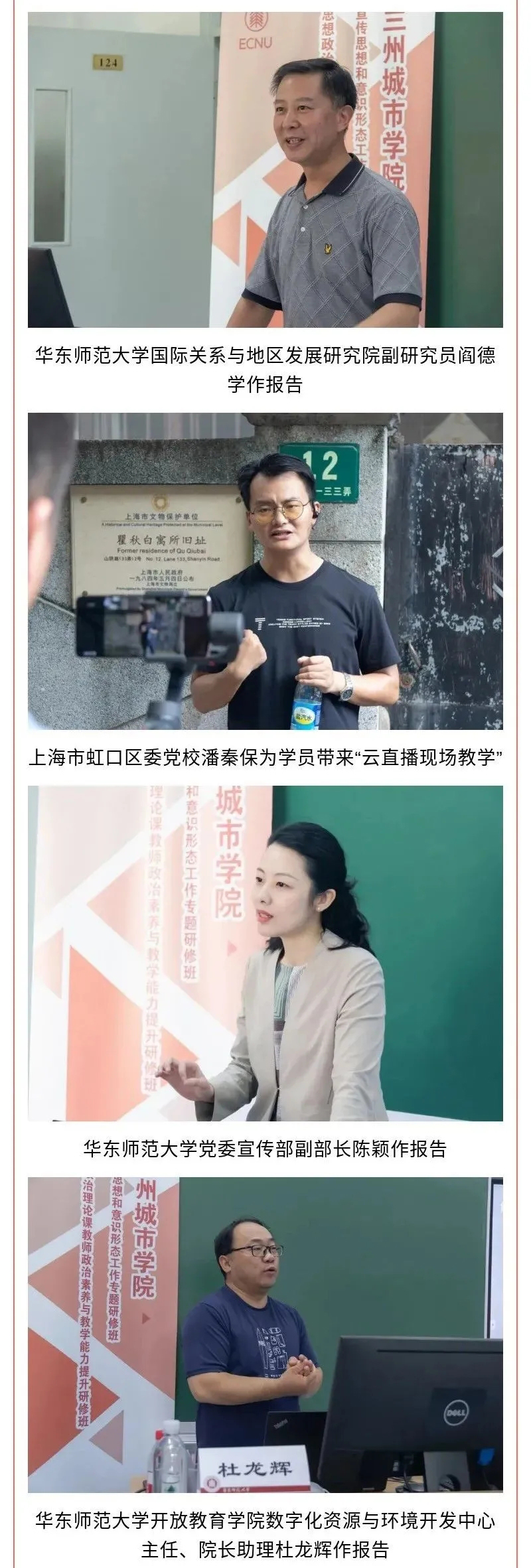 本次研修班以习近平新时代中国特色社会主义思想为指导,旨在贯彻落实党的教育方针,学习领会“七一”重要讲话精神,深入开展党史学习教育,推动两校进一步深入合作。在6天的时间里,来自中国浦东干部学院、上海交通大学、华东师范大学、上海对外经贸大学、上海虹口区委党校的13位著名专家学者,围绕宣传思想和意识形态工作以及思政课教学,以专题报告及现场教学云直播“行走中的思政课”等方式开展了辅导培训。学员们通过在线同步学习、交流研讨、撰写心得、提交研修总结等方式认真进行研修,进一步坚定了理想信念,树立了在工作中践行初心使命的决心,提升了做好宣传思想和意识形态工作以及上好思政课的能力水平。