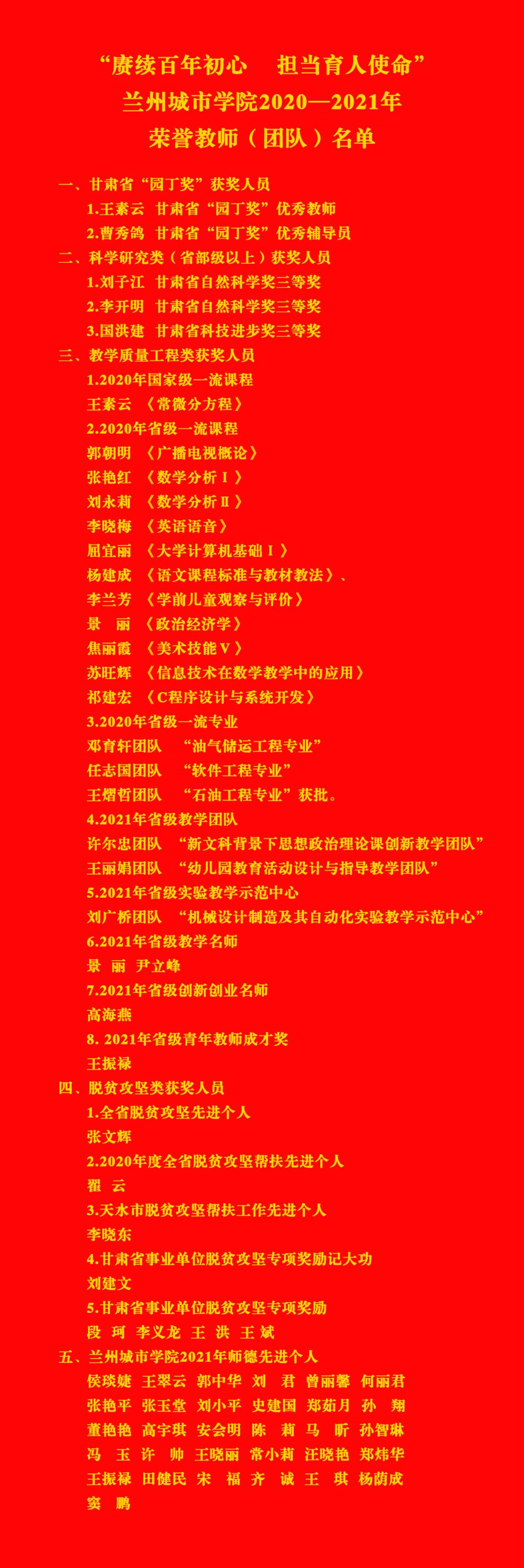 “赓续百年初心 担当育人使命”beat365官方网站2020—2021年荣誉教师(团队)名单