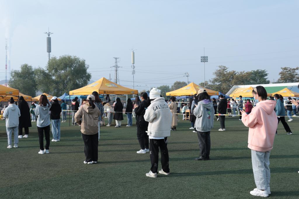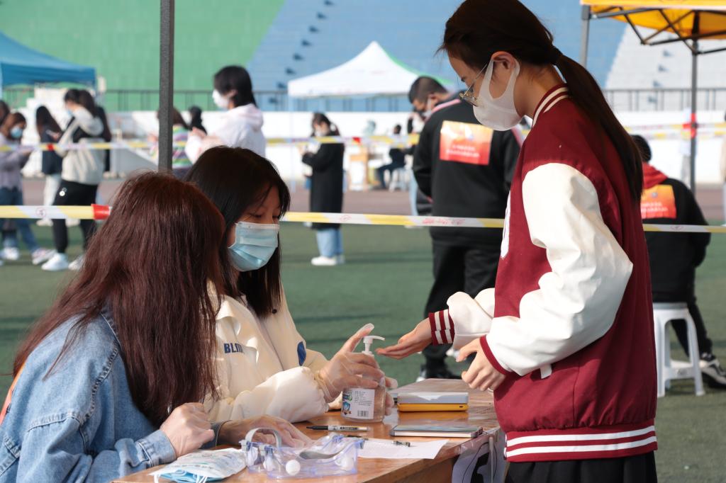 工作人员坚守岗位、精心组织;医务人员扫码登记、规范采样;各学院分段安排、专人负责;全体师生积极配合、自觉排队,现场秩序有条不紊,大家全程佩戴口罩,严格落实“两米线”距离,在工作人员的耐心引导及帮助下,有序等待检测,共同确保核酸检测高效、有序、安全进行。下午3:00,全校16200余名师生顺利完成第六轮全员核酸检测工作。