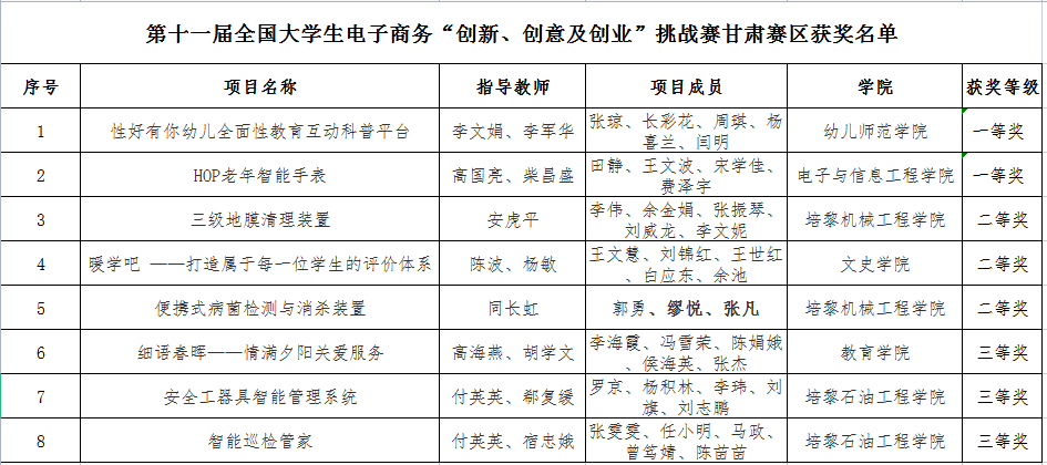 近日,第十一届全国大学生电子商务“创新、创意及创业”挑战赛全国总决赛获奖名单公布。beat365幼儿师范学院李文娟、李军华指导,张琼等同学的项目《性好有你幼儿全面性教育互动科普平台》荣获全国三等奖,实现了beat365在该项赛事全国总决赛中奖项零的突破。在此前进行的甘肃赛区比赛中,beat365共有8支队伍获得甘肃赛区奖励。