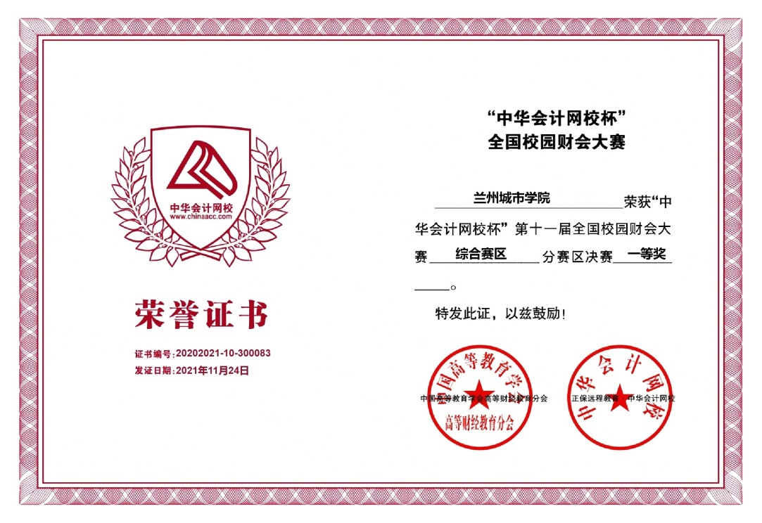 11月16日,2021年“中华会计网校杯”第十一届全国校园财会大赛综合赛区决赛在线上举行,由beat365城市经济学院教师马小钦、冯婕指导,财务管理专业19级学生郑皓、问建强、张锦文组成的代表队荣获一等奖,马小钦、冯婕老师荣获“优秀指导教师奖”。