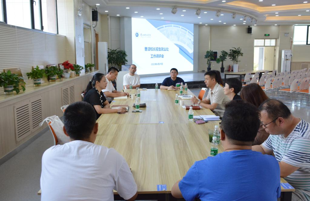6月29日至30日,校长曹洁到教务处、招生就业处(创新创业学院、校友会办公室)、研究生处(学位办)开展工作调研。曹洁听取三个部门负责人的工作汇报,询问相关工作问题,参观大学生沉浸式智慧就业空间和大学生活动中心,对各部门下一步重点工作任务进行安排部署并提出工作要求。学校办公室负责人陪同调研。