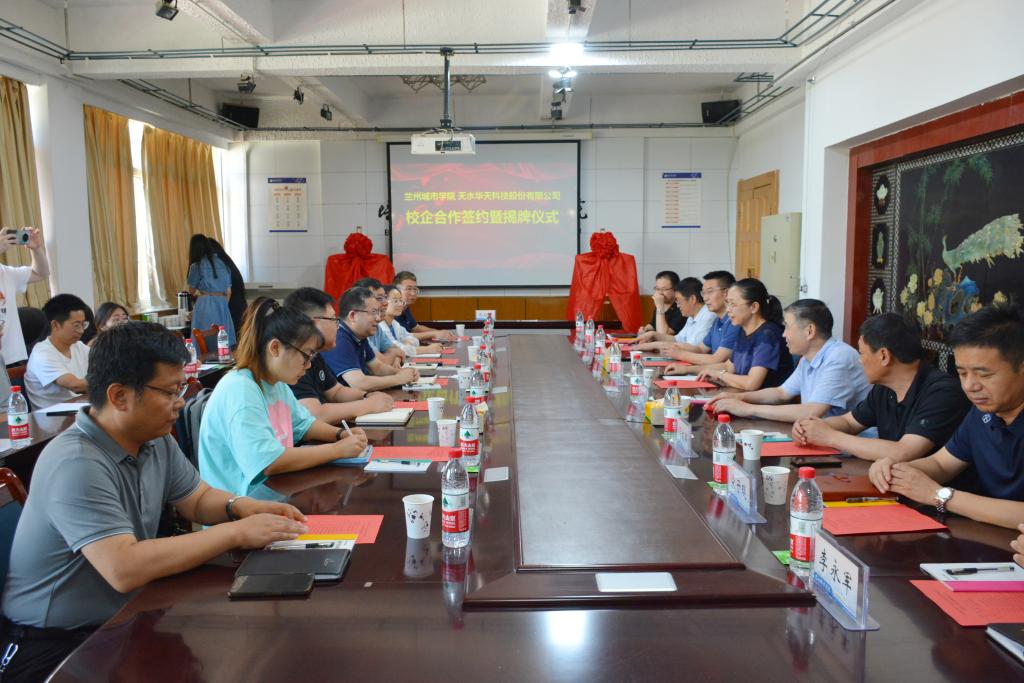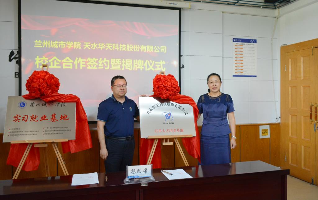 曹洁和彭成代表双方签署了校企合作协议,并共同为“天水华天科技股份有限公司订单人才培养基地”和“beat365官方网站实习就业基地”揭牌。