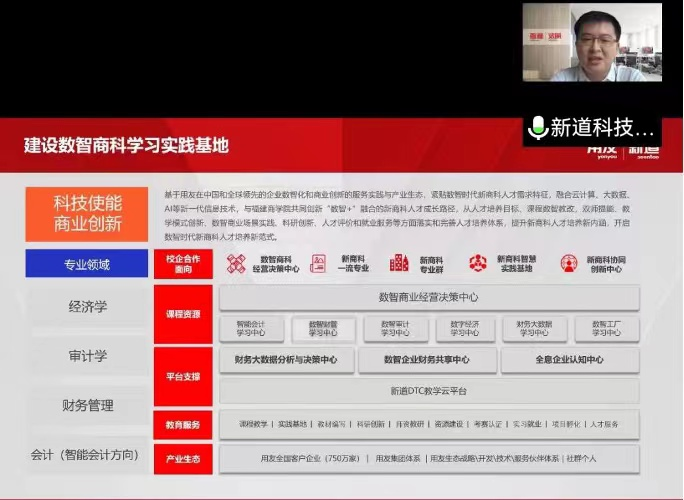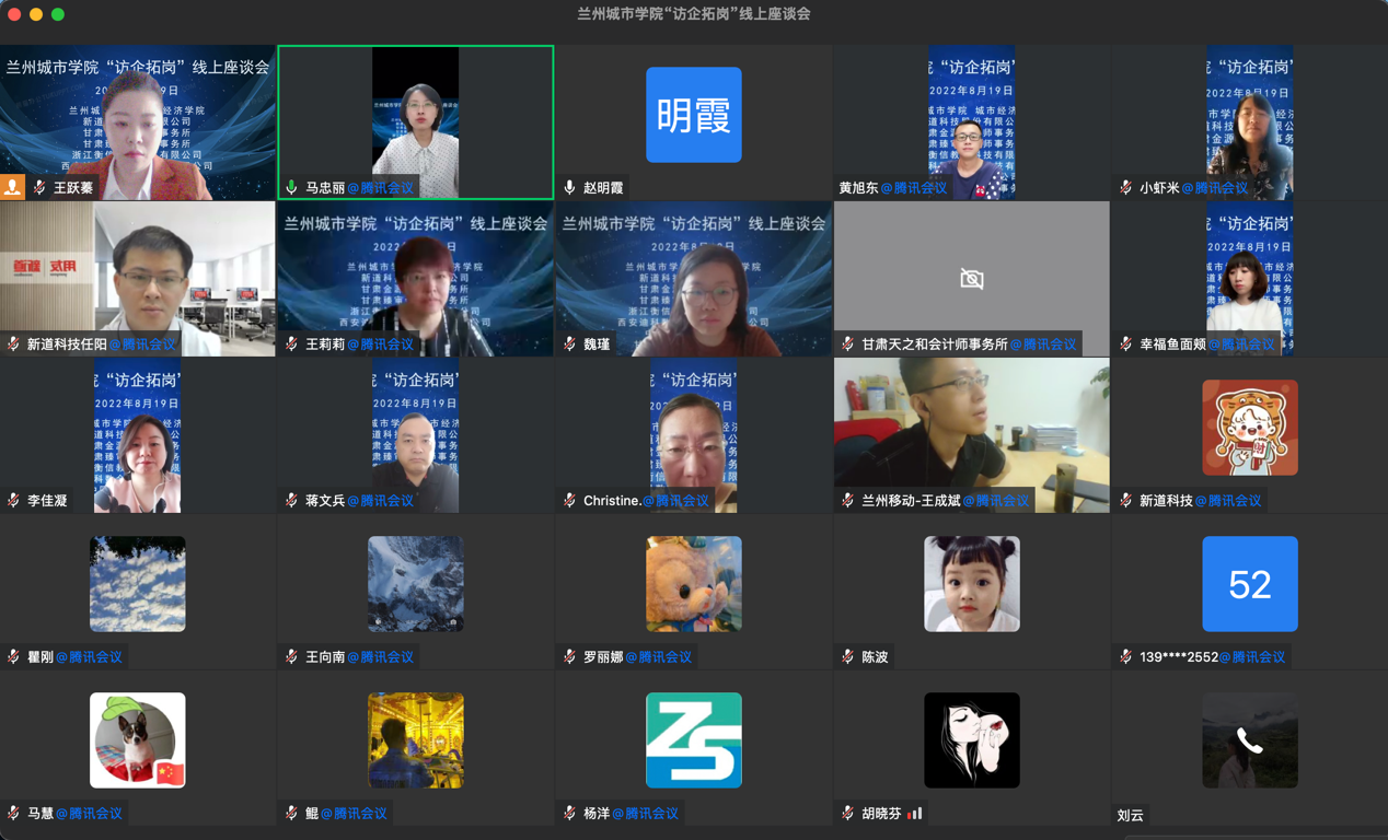 为贯彻落实党中央、国务院关于高校毕业生就业工作的决策部署,进一步开源拓岗,千方百计促进毕业生更加充分更高质量就业。8月19日上午,城市经济学院与新道科技股份有限公司、甘肃金源会计师事务所、甘肃臻审会计师事务所、浙江衡信教育科技有限公司、西安迪科数金智能科技有限公司、甘肃天之和会计师事务所、中国移动兰州分公司等7家企业开展“访企拓岗促就业”线上座谈会。校党委常委、副校长牟录贵,学院就业工作领导小组全体成员和企业方负责人参加会议。