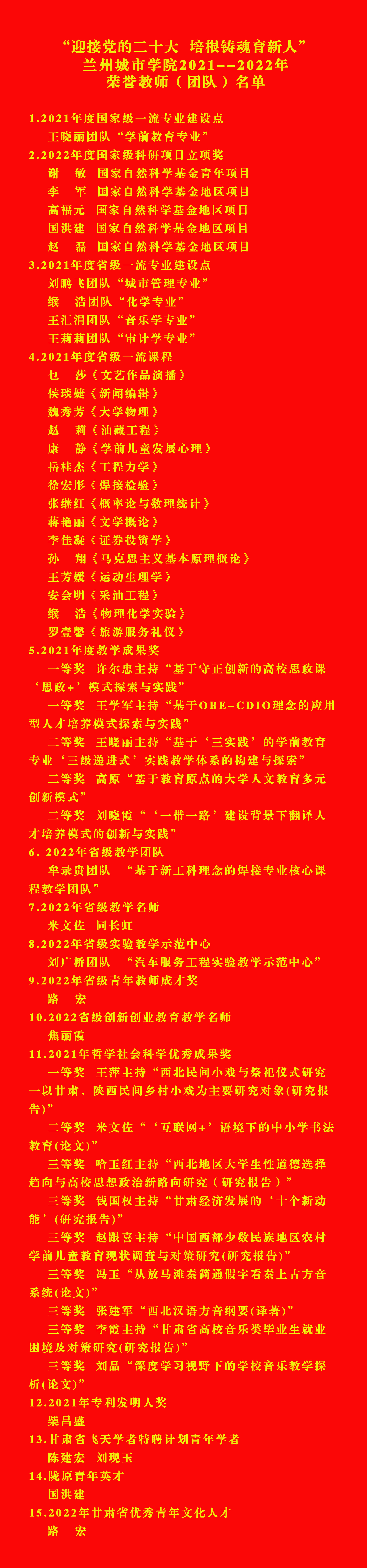 “迎接党的二十大 培根铸魂育新人”beat365官方网站2021--2022年荣誉教师(团队)名单