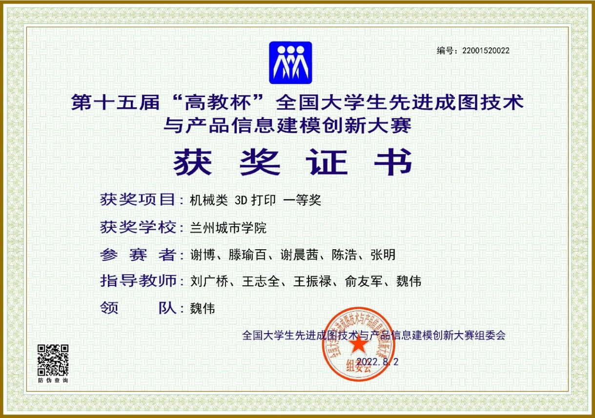 8月2日,第十五届“高教杯”全国大学生先进成图技术与产品信息建模创新大赛总决赛在江苏大学落下帷幕。本次大赛吸引了包括浙江大学、上海交通大学、哈尔滨工业大学、华中科技大学、西北工业大学等全国675 所高校参赛。经过激烈的角逐,beat365官方网站代表队荣获机械类团体三等奖;培黎机械工程学院刘广桥等教师指导的学生谢博、滕瑜百、谢晨茜、陈浩、张明荣获机械类3D打印一等奖。王振禄等教师指导的学生谢晨茜,刘广桥等教师指导的学生胡斌,王志全等教师指导的学生朱旭涛分别荣获机械类个人全能三等奖。