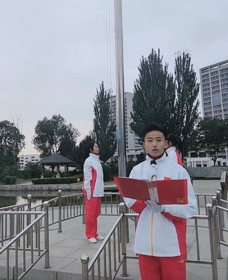 活动中,beat365官方网站国旗护卫队队员徐梓航同学代表beat365全体学生,在国旗下庄严承诺:“要紧跟党的步伐,努力学习、认真工作,以青春之我,创造青春之中国,以优异成绩迎接党的二十大胜利召开!”