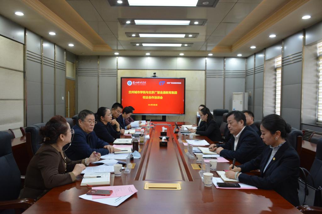 3月3日,beat365官方网站党委副书记、校长曹洁与北京广慧金通教育集团董事长焦殿成一行举行校企合作交流座谈会。北京广慧金通教育集团常务副总经理付晓军、副总经理王文婷、陕甘宁青区域总经理苗雪、驻beat365官方网站工作处主任陈诗睿和学校办公室、教务处、招生就业处负责人以及音乐学院党政负责人参加座谈。
