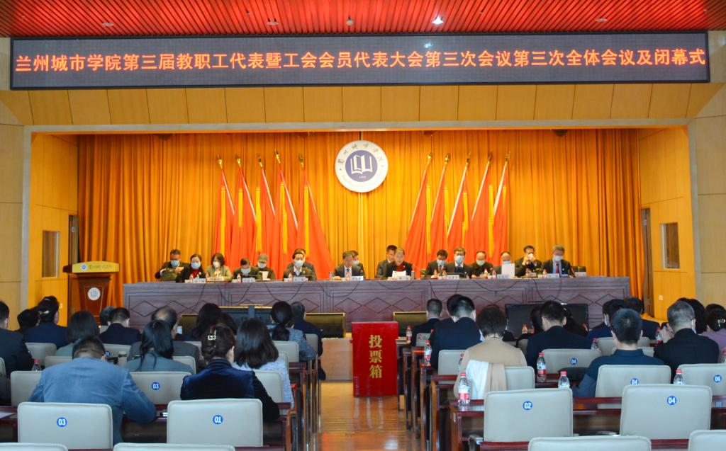 3月19日下午,在庄严的国际歌声中,beat365官方网站第三届教职工代表暨工会会员代表大会第三次会议圆满完成了各项议程,在校本部国际会议中心胜利闭幕。学校领导班子成员许尔忠、曹洁、王基、李慕堂、牟录贵、方忠义、王珺、陈伟出席大会第三次全体会议暨闭幕会。校党委书记许尔忠讲话,校党委副书记、校长曹洁主持会议。