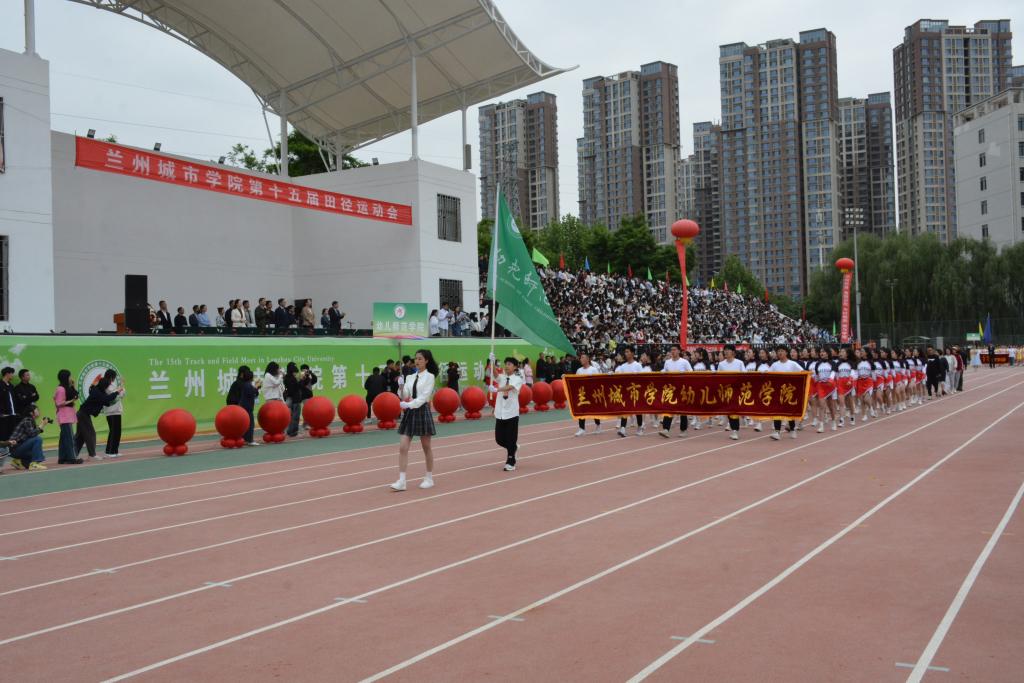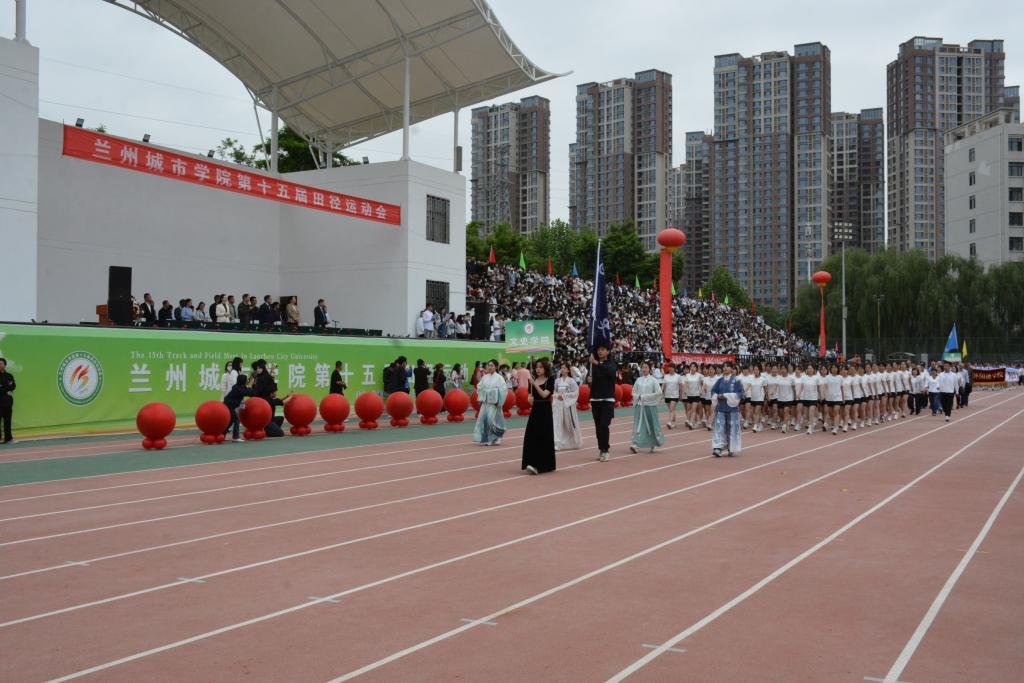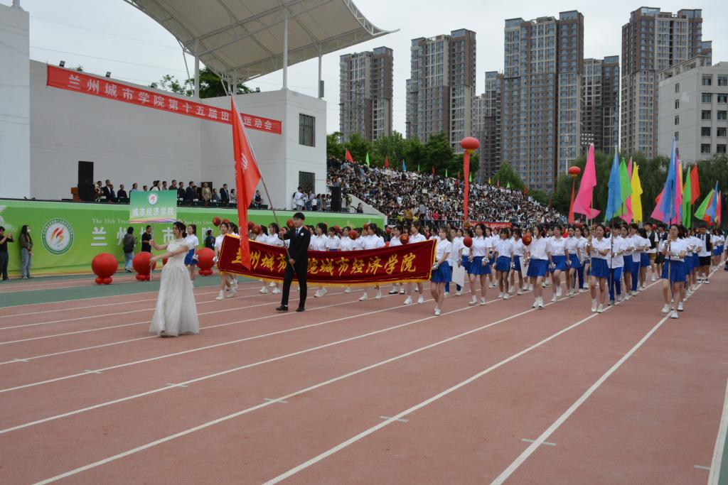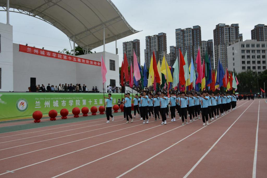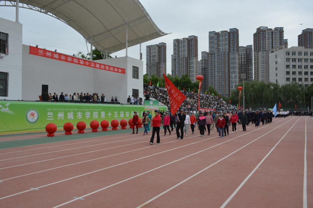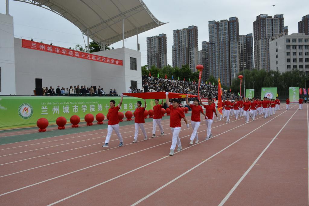 在欢快激昂的运动员进行曲中,国旗队、会徽队、校训队、彩旗队、裁判员队伍和各学院、各单位代表队精神抖擞,意气风发,步伐整齐,喊着嘹亮的口号依次入场。