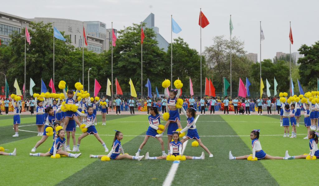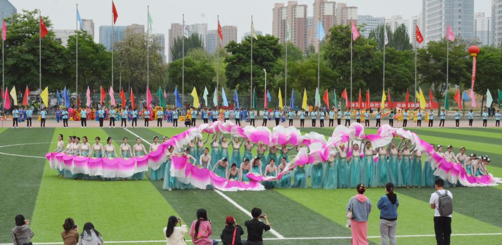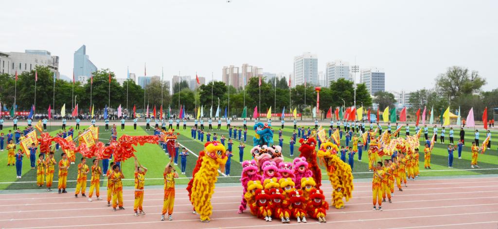 李柱宏、张晶晶分别代表全体裁判员、全体运动员宣誓。随后,音乐学院师生带来了《春来城院》舞蹈表演,舞蹈编排高雅精致,动作舒展优美,展现了禅味十足的古风古韵,又表现出现代人追求美好生活的热情。安宁区吉杰小学的啦啦操表演中,交错变幻的队形、跃动灵活的节奏,为所有人带来了快乐与欢笑。武术与舞龙舞狮节目中,古老的武术运动和现代歌曲巧妙配合,长龙狮子踏着鼓点上下飞舞、左右翻腾,营造出“瑞狮欢舞歌盛世,龙腾狮舞送吉祥”的喜庆氛围。17支团体操代表队分批登场,身着绚丽的服装,洋溢着自信的微笑,在“时代感”的奋进旋律中,舞动青春、放飞梦想,将现场气氛推向了高潮。