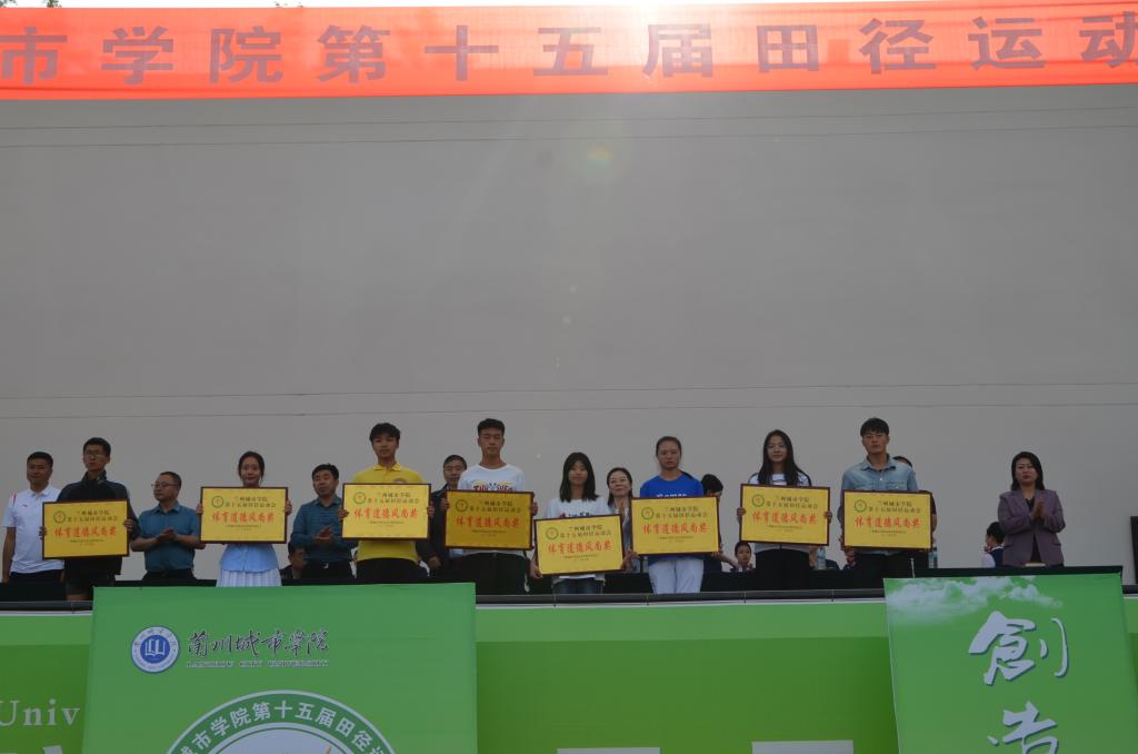 本届运动会上,培黎机械工程学院、城市环境学院、电子工程学院分获甲组团体前三名;培黎机械工程学院、电子工程学院、培黎石油工程学院分获甲组男子团体前三名;培黎机械工程学院、城市环境学院、电子工程学院分获甲组女子团体前三名。在乙组比赛中,体育学院211班、212班、223班分获乙组团体总分前三名。在健身操团体比赛中,幼儿师范学院、培黎机械工程学院获一等奖;马克思主义学院、城市环境学院、城市管理学院、音乐学院获二等奖;传媒学院、教育学院、城市经济学院、化学工程学院、电子工程学院获三等奖。机关第二分会获得机关教工组团体一等奖、信息工程学院分会获得学院教工组团体一等奖。文史学院、信息工程学院、外国语学院、城市建设学院、培黎石油工程学院、艺术设计学院、体育学院获“优秀组织奖”。城市经济学院、马克思主义学院、电子工程学院、音乐学院、城市建设学院、城市环境学院、外国语学院、培黎机械工程学院、培黎石油工程学院获“体育道德风尚奖”。另外,城市管理学院姚德乐同学以22秒65的成绩打破男子甲组200米纪录;体育学院张晶晶同学以26秒12的成绩打破女子乙组200米纪录;体育学院宋俊杰同学以21秒93的成绩打破男子乙组200米纪录。