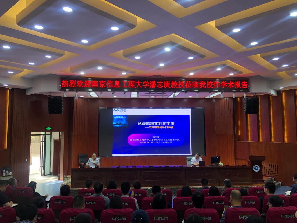 5月30日上午,应科学技术处邀请,南京信息工程大学教授潘志庚为学校师生作了题为《从虚拟现实到元宇宙》的学术报告。学校党委副书记、校长曹洁出席并主持讲座,全校师生400余人参加。