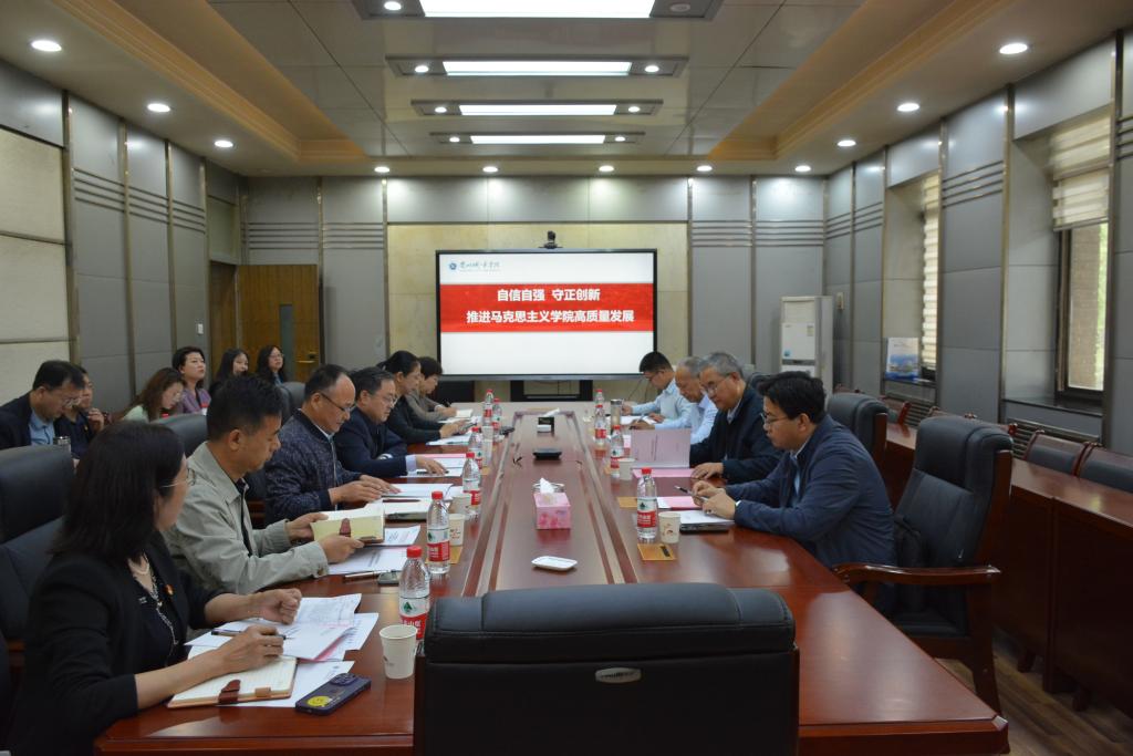 5月26日,省委宣传部、省委教育工委省级重点马克思主义学院培育单位评估验收专家组来校,对beat365重点马克思主义学院培育单位建设进行实地考察和评估验收。专家组由西北师范大学校党委副书记刘玉泉任组长,西北师范大学马克思主义学院院长史小宁、兰州交通大学马克思主义学院院长蔡中宏、兰州大学马克思主义学院副院长李东坡为成员,采用听取汇报、查看支撑材料、随机听课、召开座谈会、实地考察走访等种方式开展评估验收工作。
