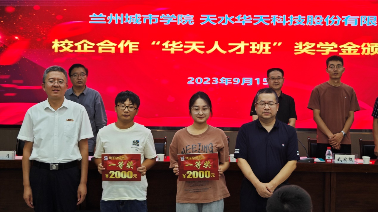 学院相关负责人介绍了“华天人才班”奖学金评审情况、公布获奖名单。校企双方领导为获奖学生颁发了奖学金。获奖学生代表表示,通过一年来在“华天人才班”的深入学习,收获颇丰,感谢学校和天水华天科技股份有限公司为自身成长搭建了集学习与实习实践为一体的新平台,在华天人才班所学知识紧密对接产业发展需求,打破了学科和专业限制,实现了个人多维度综合能力提升。