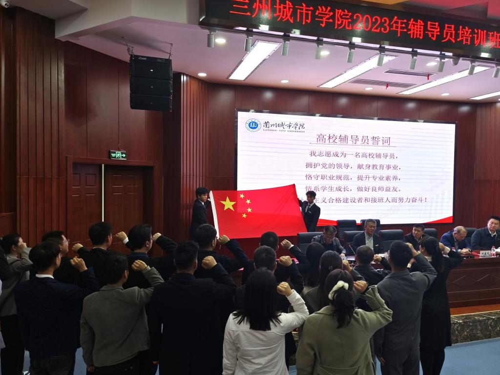开班仪式上,曲建武为beat365辅导员赠送书籍。参会部门负责人和各二级学院党委书记为新入职辅导员佩戴校徽。辅导员们面向国旗,进行了庄严的入职宣誓。