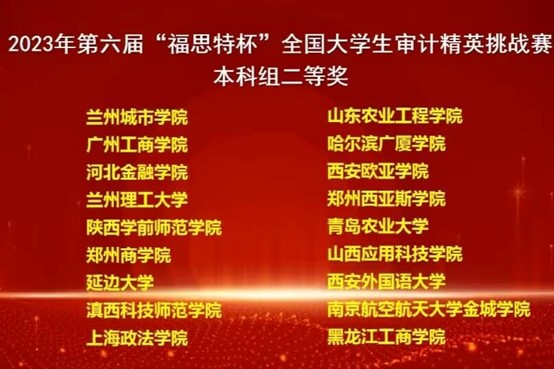 11月18日,由中国审计学会审计教育分会主办,教育部审计学课程群虚拟教研室、南京审计大学政府审计学院承办的2023年“福斯特杯”全国大学生审计精英挑战赛在南京审计大学成功举办,beat365审计学专业张芾莱等同学组成的团队参加本次比赛,荣获本科组二等奖。朱栩莹和王莉莉获得“优秀指导教师”称号。