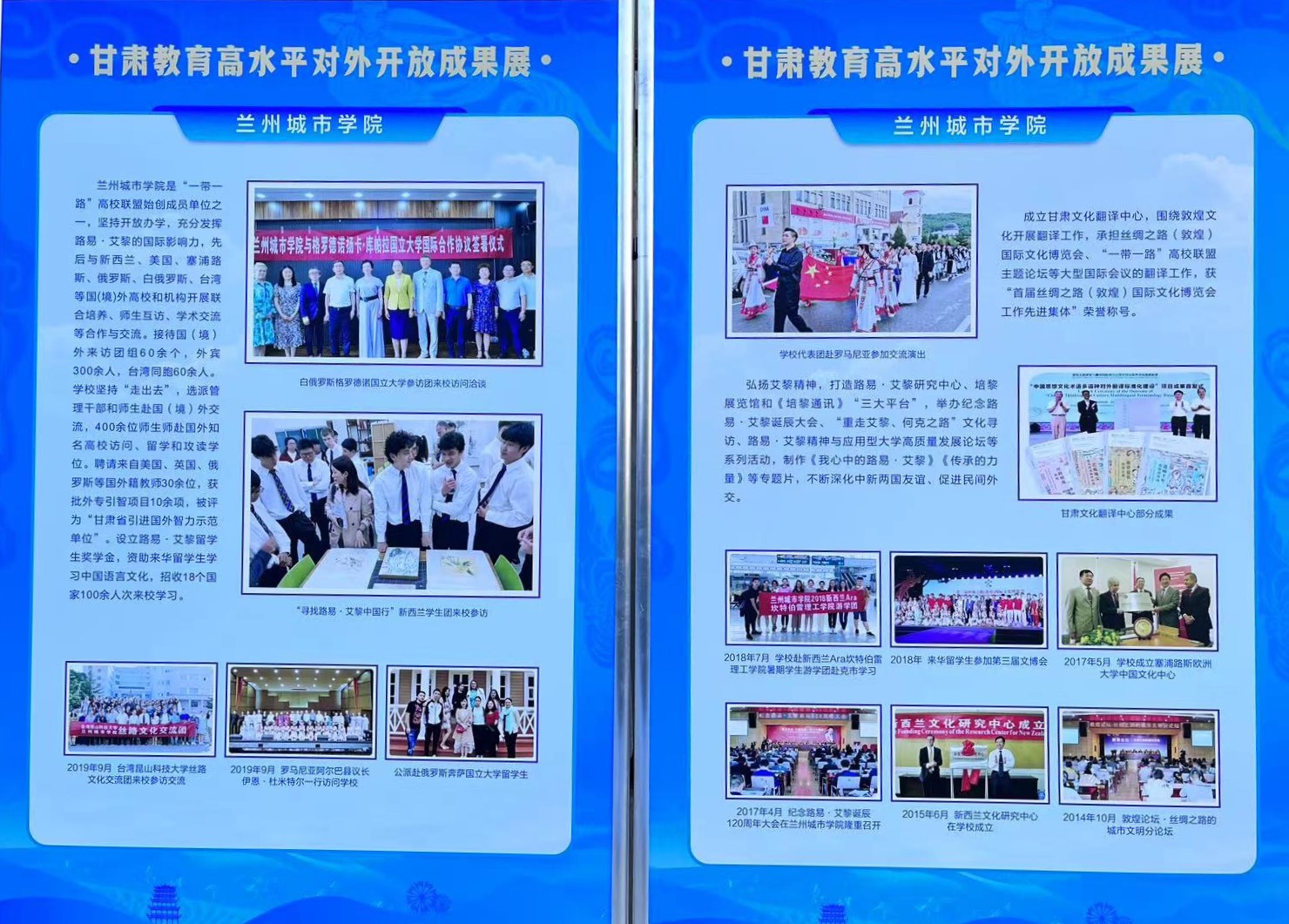 会场展示了甘肃推进“一带一路”教育行动十周年成果,beat365十年国际交流合作成果在展示区展示。
